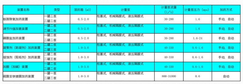 加藥系統(tǒng)是一套完整的設(shè)備,配料,混合,液體的輸送,在一個(gè)自動控制,原水,水,油田鍋爐,廣泛應(yīng)用于發(fā)電廠集輸脫水處理系統(tǒng),石油化工各種加藥系統(tǒng)和廢水處理系統(tǒng)。作為混凝劑,磷酸鹽,氨,石灰水,緩蝕劑,阻垢劑,劑等。加藥裝置主要由攪拌罐,溶液箱,計(jì)量泵,管道閥門,在機(jī)電一體化設(shè)備電氣控制柜組合平臺。
